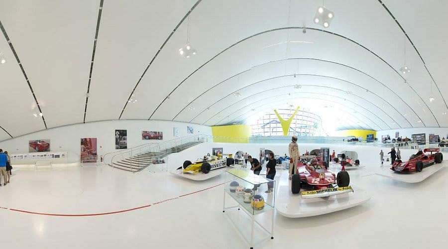 Το ανακαινισμένο πατρικό σπίτι του Enzo Ferrari συνδυάζεται με έναν εντυπωσιακό, φουτουριστικό εκθεσιακό χώρο. Η χαρακτηριστική κίτρινη αλουμινένια οροφή, εμπνευσμένη από το καπό ενός αυτοκινήτου, λειτουργεί ως φόρος τιμής στη μηχανική ιδιοφυΐα και το πάθος της Ferrari.