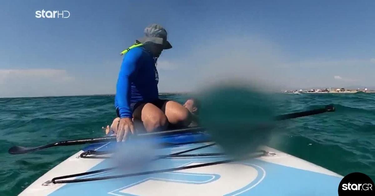 Ενώ έκανε SUP στα κύματα, άκουσε φωνές για βοήθεια. Χωρίς δεύτερη σκέψη, κατευθύνθηκε προς το σημείο και αντίκρισε δύο παιδιά να παλεύουν με τα ισχυρά ρεύματα.