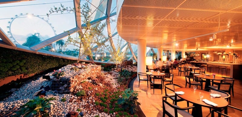 Στην άκρη αυτού του μυθικού πάρκου, ο βραβευμένος Βρετανός chef Jason Atherton επέλεξε να στεγάσει το εστιατόριό του, Pollen. Βρίσκεται μέσα στο Flower Dome και περιβάλλεται κυριολεκτικά από τροπική βλάστηση. Ένα γεύμα εδώ δεν είναι απλώς γαστρονομική εμπειρία, αλλά μέρος της ίδιας της φιλοσοφίας των Gardens by the Bay: αρμονία ανθρώπου, φύσης και αισθήσεων.