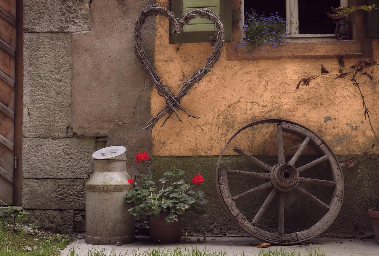 • Χρησιμοποιήστε vintage αντικείμενα, όπως παλιά δοχεία, καροτσάκια ή ξύλινες ρόδες, για να δώσετε χαρακτήρα και ιστορία στον χώρο.