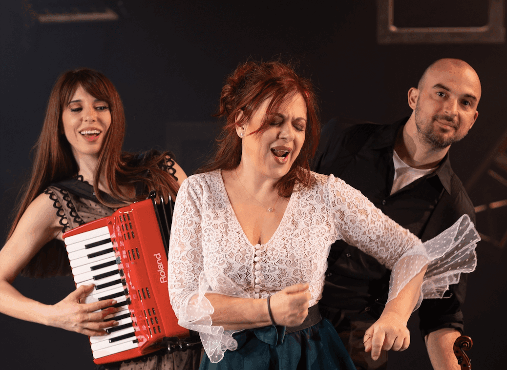 Επί σκηνής, η αέρινη Μιρέλλα Πάχου τραγουδά, παίζει ακορντεόν και συνοδεύει τη ροή του έργου με μοναδική ευαισθησία.